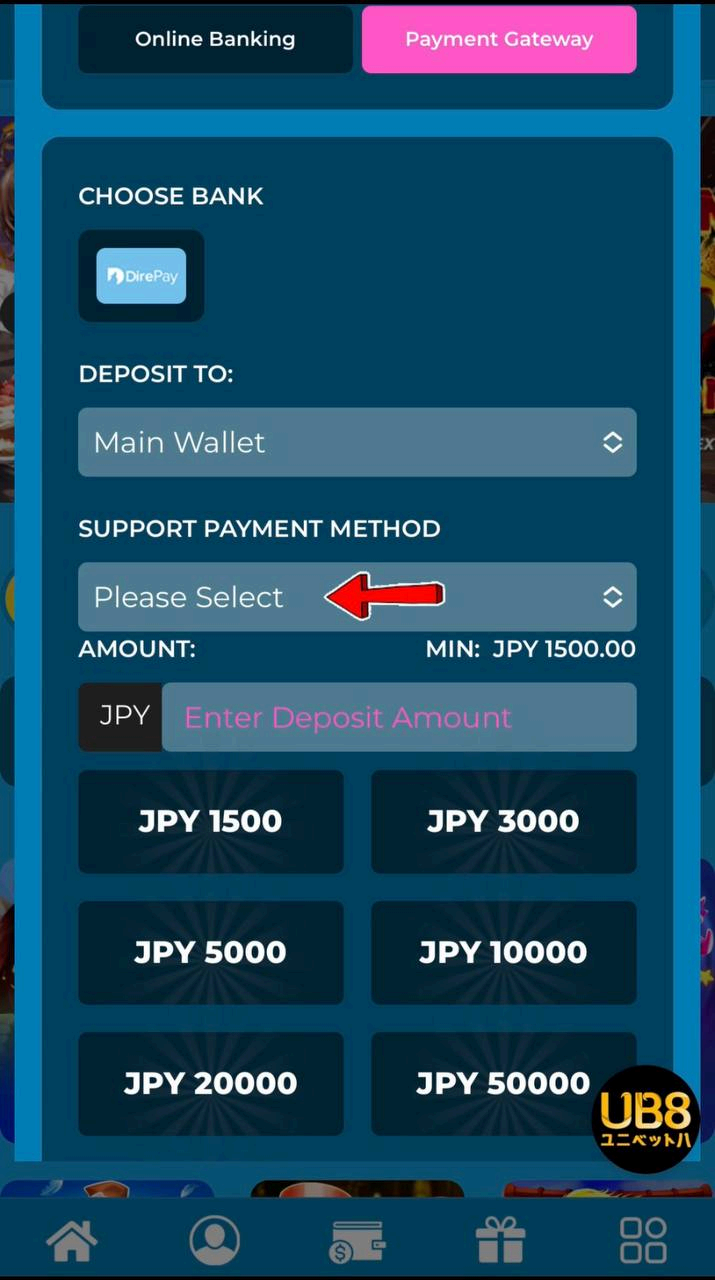 その後、オンラインバンキングまたは決済ゲートウェイ(DIREPAY)を選ぶことができます。*DIREPAYは暗号通貨に対応しています。