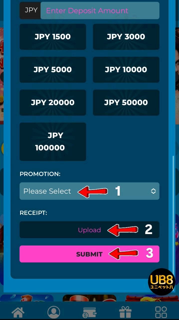 アカウントに入金後、領収書をアップロードしてください。