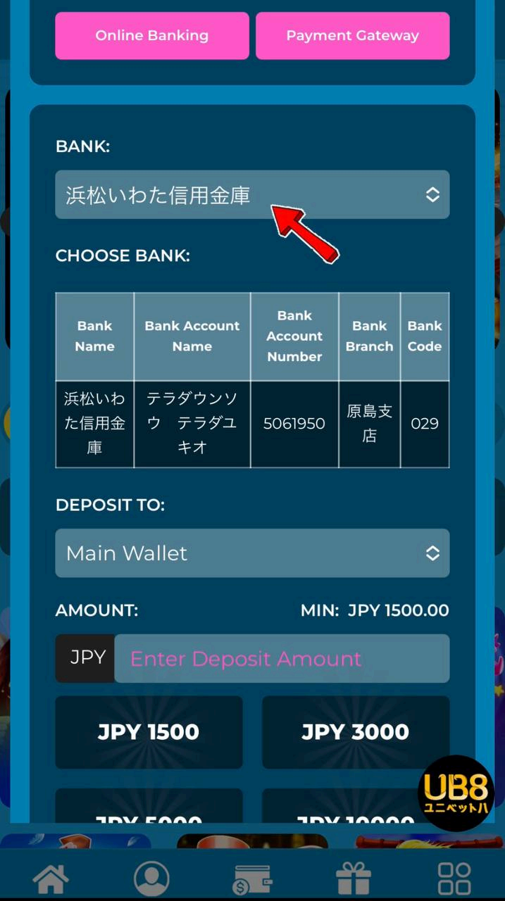 ログインし、右上の(入金)ボタンをクリックしてください
